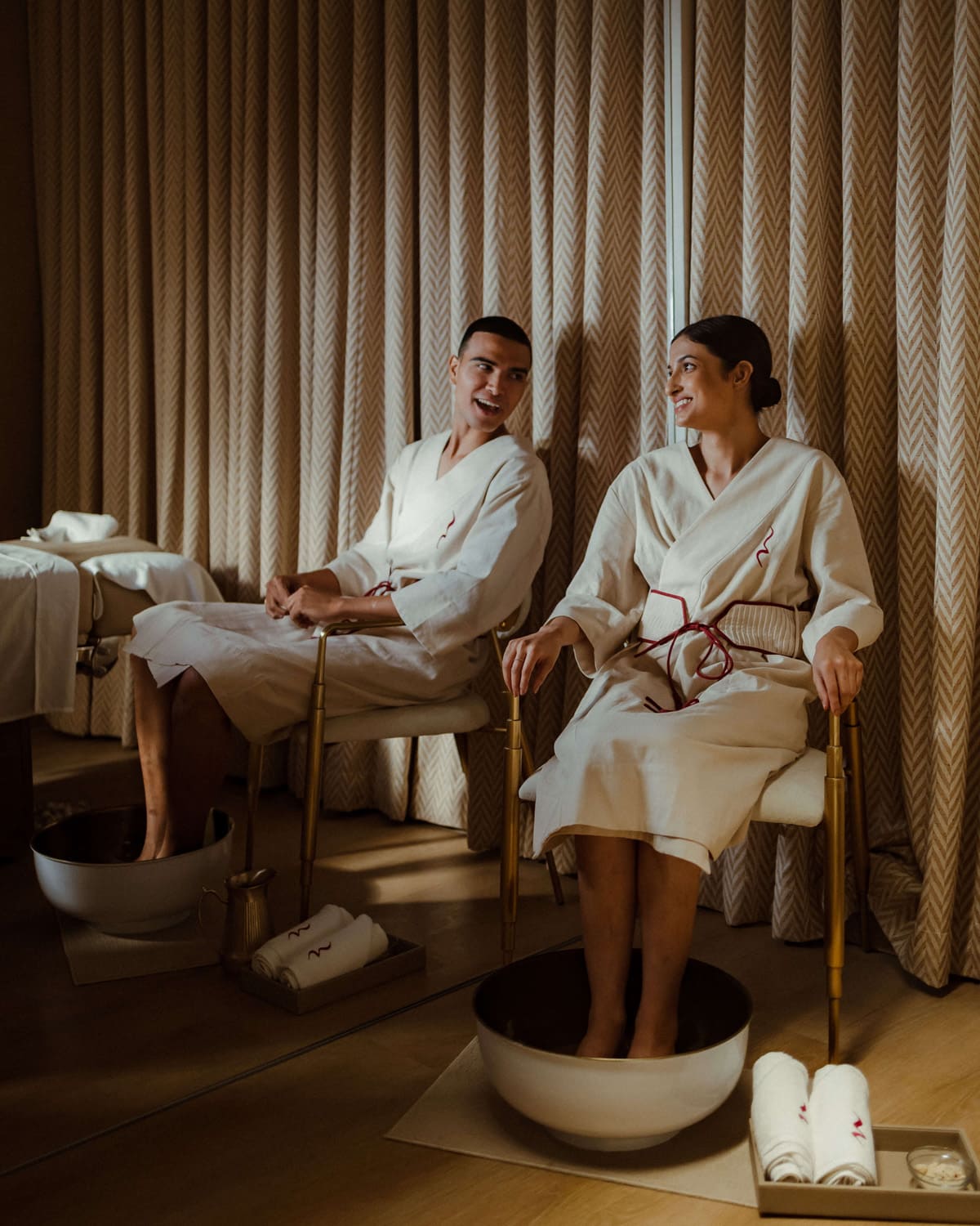 Indulge in the ultimate relaxation cocoon with our luxurious 3-hour couples journey. Begin with a 90-minute side-by-side full-body massage, designed to improve circulation, and restore balance. Next, enjoy a 60-minute rejuvenating facial, tailored to nourish, hydrate, and refresh your skin and conclude with a 30-minute soak, to elevate your senses. This immersive experience is perfect for couples seeking pure indulgence, connection, and total renewal.