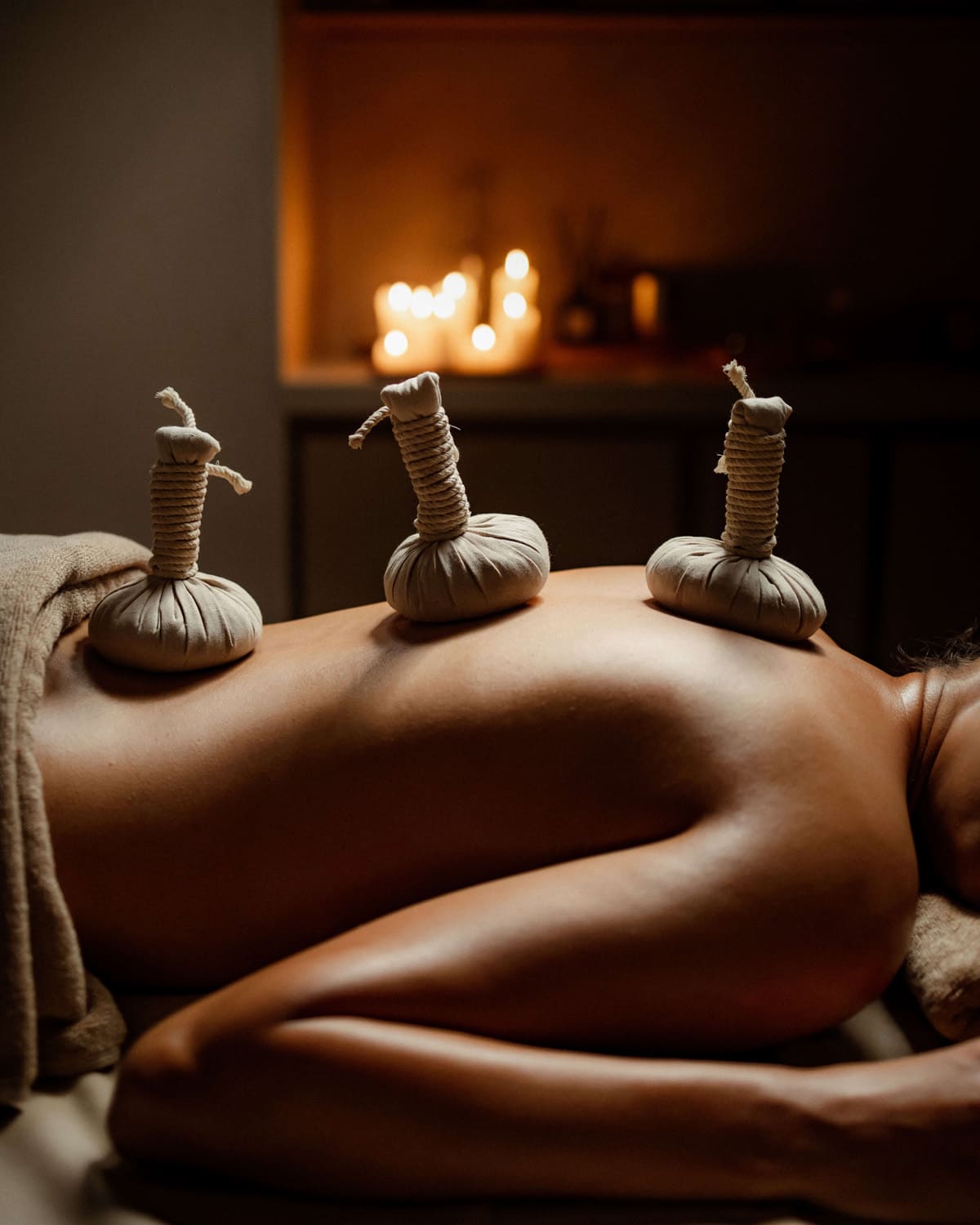 Revitalise with Ayurvedic Potli Massage as it combines warm herbal compresses and rhythmic techniques to relieve muscle tension, reduce inflammation, and restore energy flow. Heated potlis filled with medicinal herbs stimulate marma points, promoting detoxification, pain relief, deep relaxation, revitalises the body and offers a perfect remedy for aches, stress, and overall well-being.