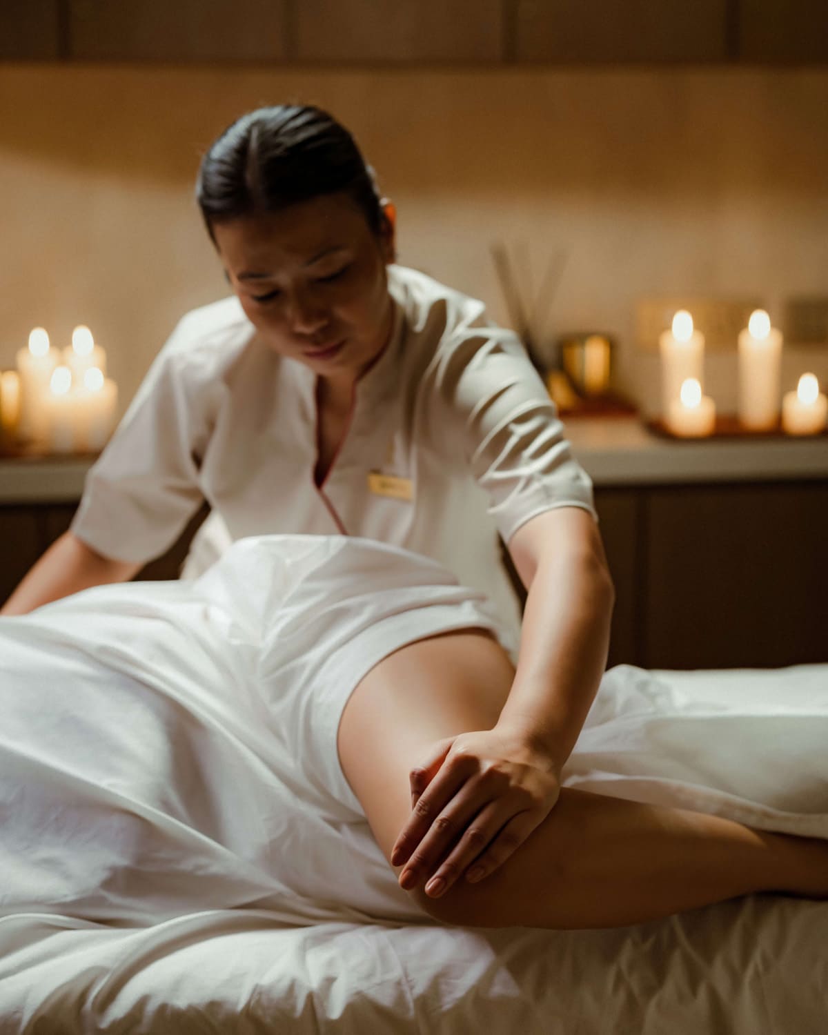 Dhun's signature body treatment restores harmony to the doshas using tailored oils, deep strokes, dynamic stretches, sound healing, and chakra massage. This holistic therapy balances energies, enhances Qi flow, and rejuvenates body and mind, leaving you deeply relaxed and revitalised. Experience deep relaxation and renewed vitality.